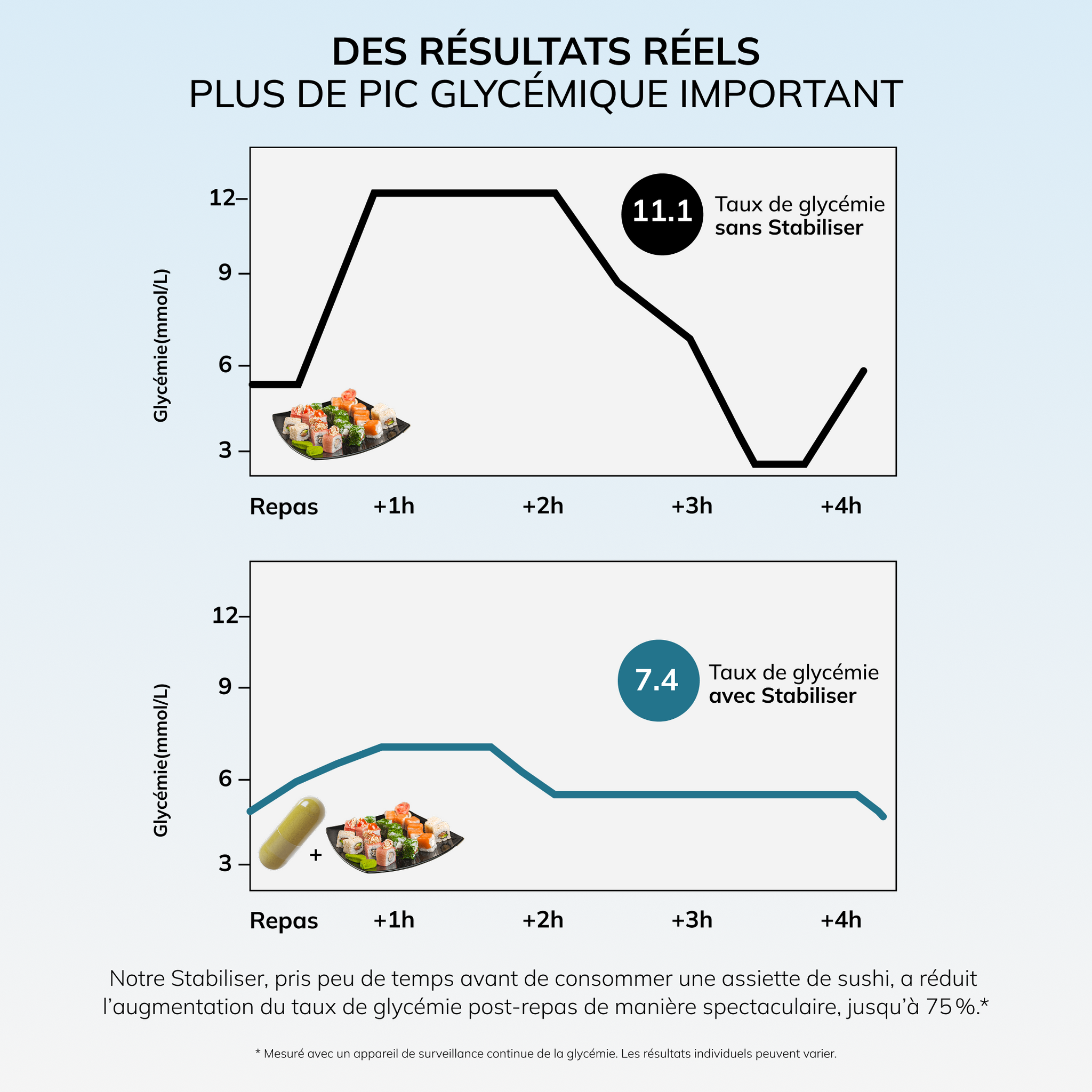 By reducing glucose absorption after a meal, the Stabiliser helps prevent the crashes that lead to fatigue. Within the first month, 80% of users report more consistent energy levels throughout the day.