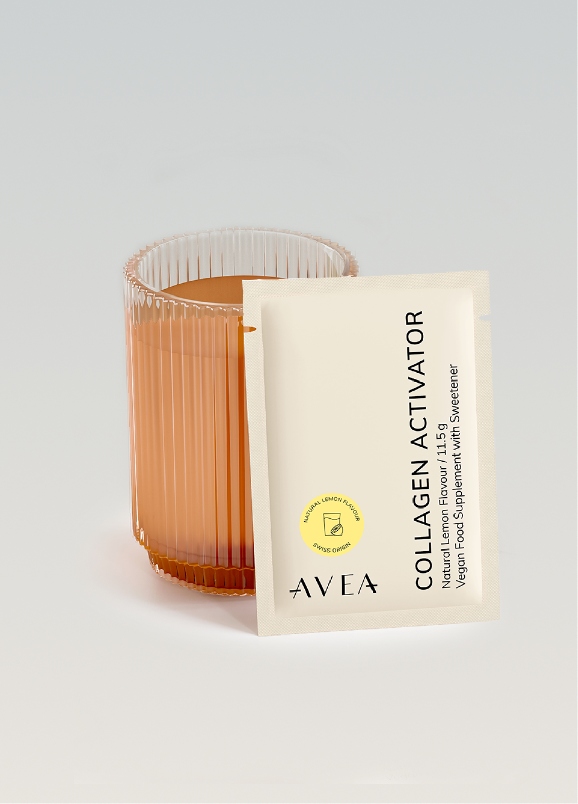 "AVEA uses a vegan collagen pre-cursor, combined with Vitamin C, AKG and Astaxanthin for more effective results"